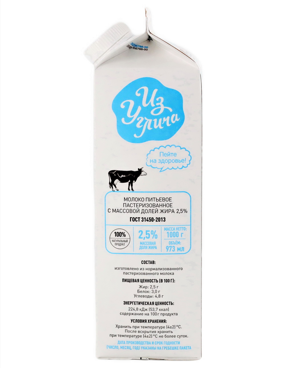 Молоко Из Углича пастеризованное 2.5%, 1кг