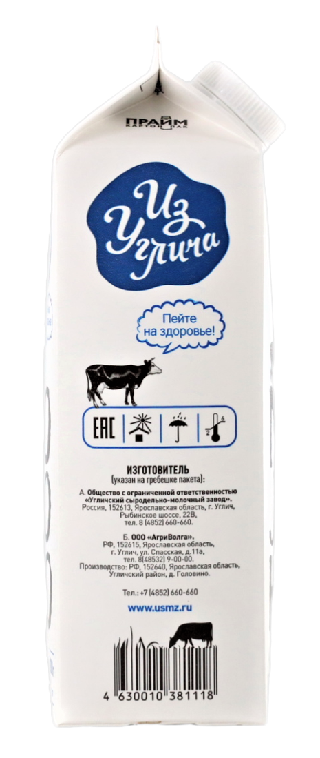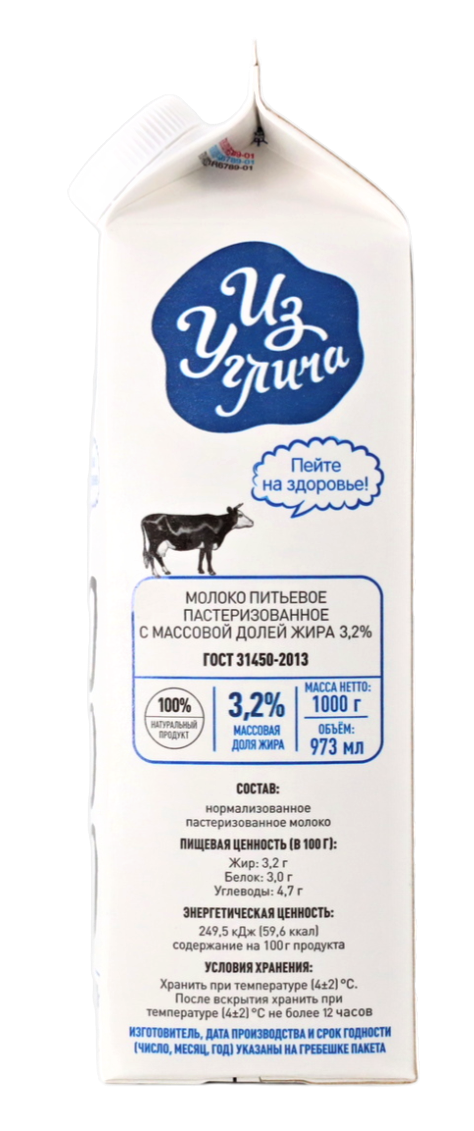Молоко Из Углича пастеризованное 3.2%, 1кг