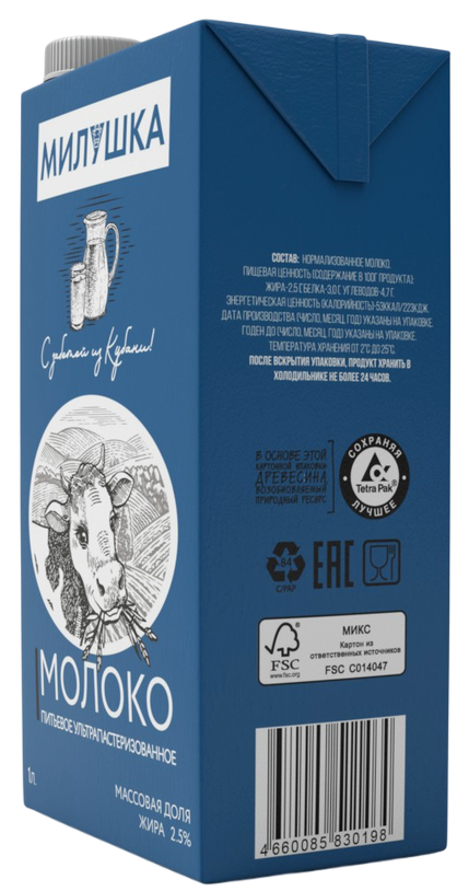 Молоко 2,5% ультрапастеризованное 1 л, Милушка Молоко – уникальный по своему составу и свойствам продукт. Блюда из молока очень разнообразны, они приносят пользу, а также обогащают своим вкусом наш рацион.