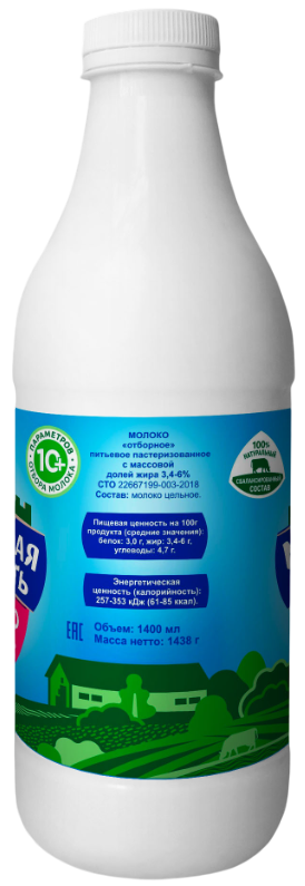 Молоко Молочная крепость отборное ГОСТ 3,4-6%, 1.4л