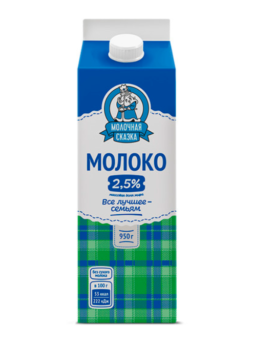 Молоко МОЛОЧНАЯ СКАЗКА 2,5% пюр-пак, 950г