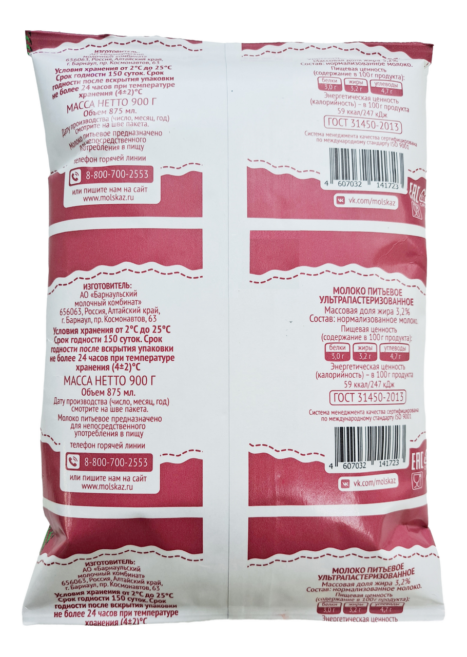 Молоко Молочная сказка ультрапастеризованное 3.2% ГОСТ, 900г - молоко является одним из основных источников микроэлементов в жизни человека. В часности в его состав входят кальций, фосфор, магний, натрий, железо, фтор, йод и ряд витаминов. Благодаря кратковременности термического воздействия при ультрапастеризации в нем выживают некоторые минеральные компоненты и биологически активные комплексы, при этом погибают микроорганизмы, которые способствуют тому, чтобы молоко портилось.