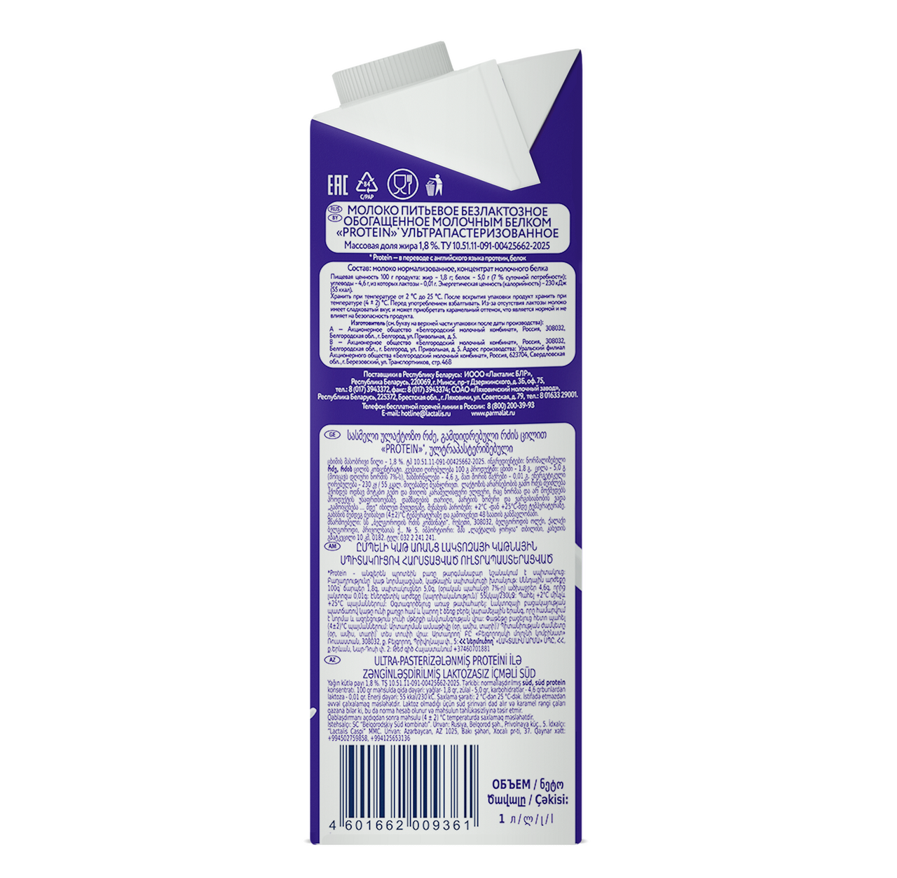 Молоко Parmalat Protein ультрапастеризованное безлактозное 1.8%, 1л