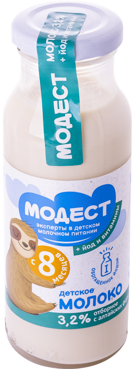 Молоко детское Модест стерилизованное обогащенное витаминами и йодом 3.2% с 8 месяцев, 200г