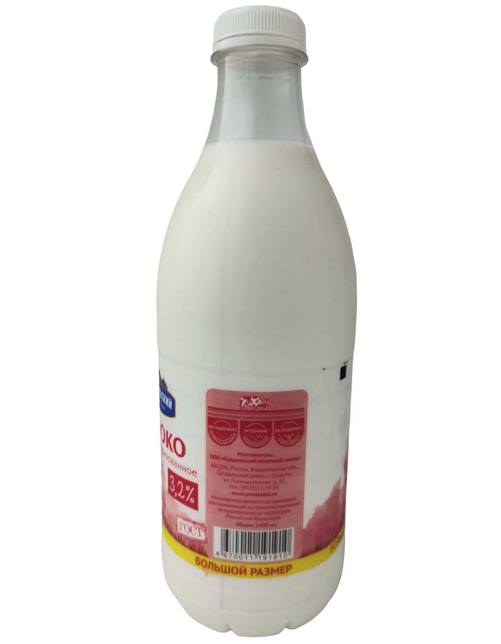 Молоко Суздальский МЗ пастеризованное 3.2%, 1.4л
