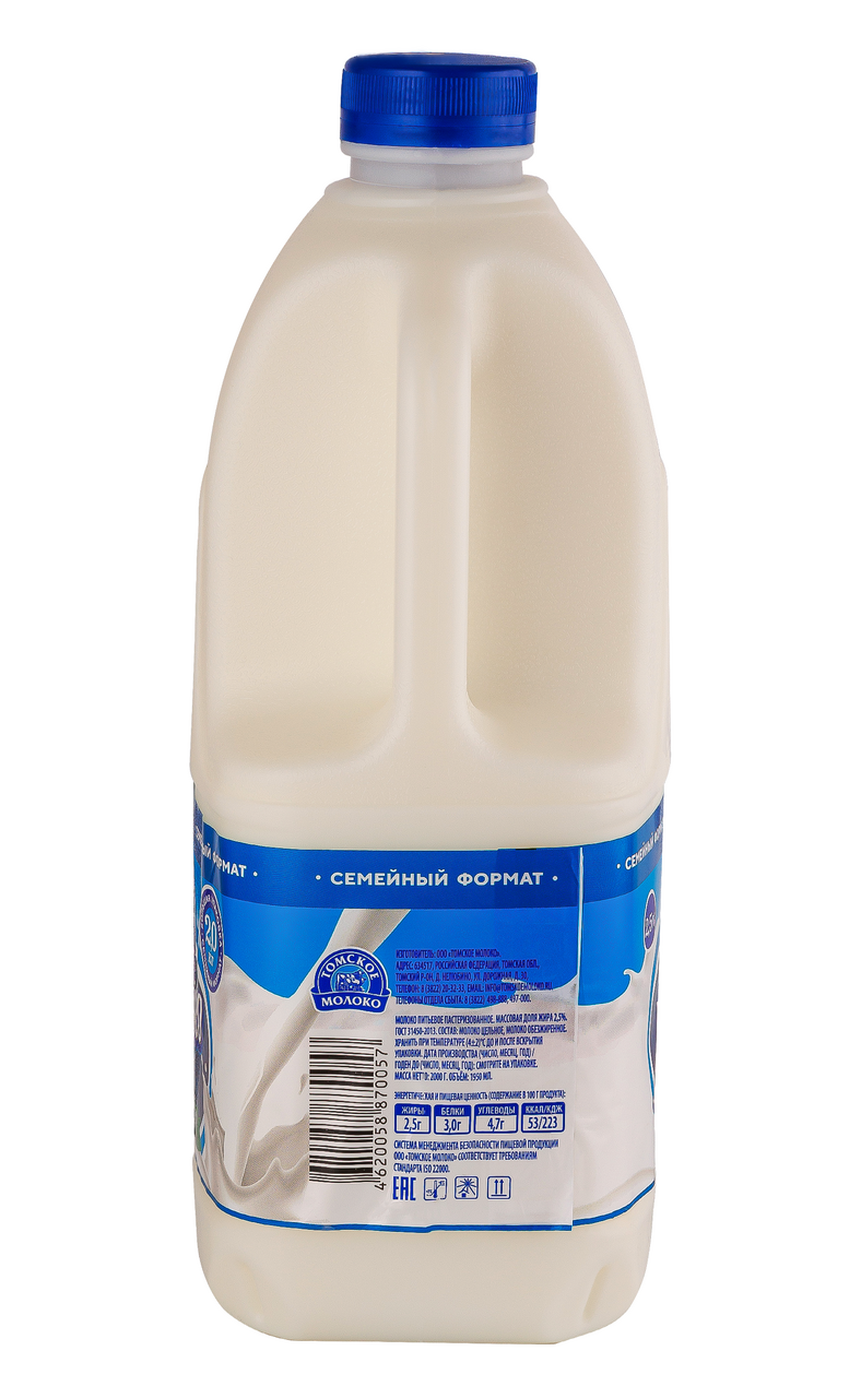 Молоко Томское молоко пастеризованное 2.5%, 2кг