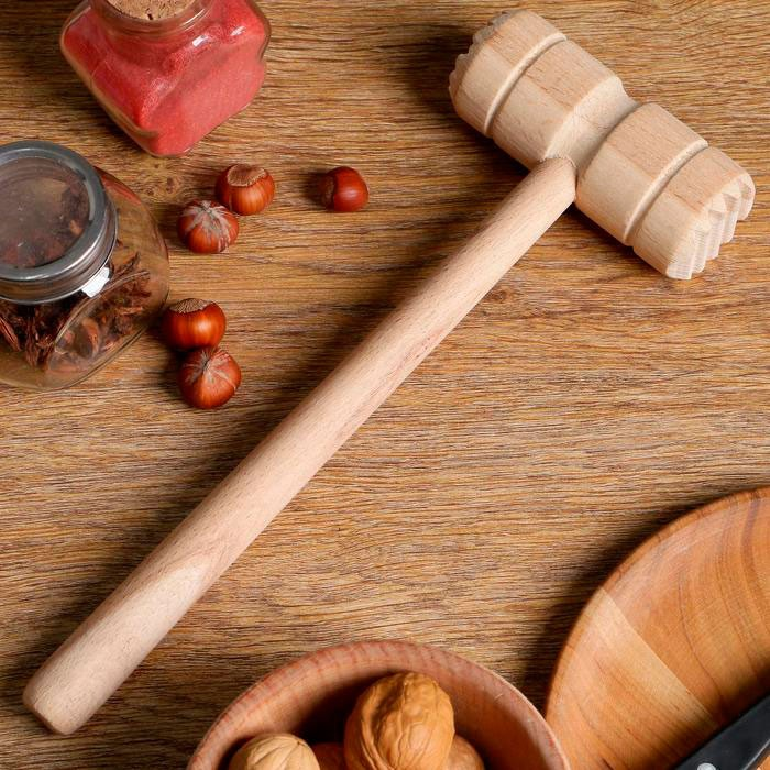 Молоток для мяса Ромакс из древесины бука, 29 см выполнен из натурального дерева. Он предназначен для отбивания мяса, что делает его более нежным и сокращает время приготовления. Очень удобная ручка не позволит выскользнуть молотку из вашей руки. Молоток для мяса займет достойное место среди аксессуаров на вашей кухне. Он легко моется, занимает мало место при хранении.