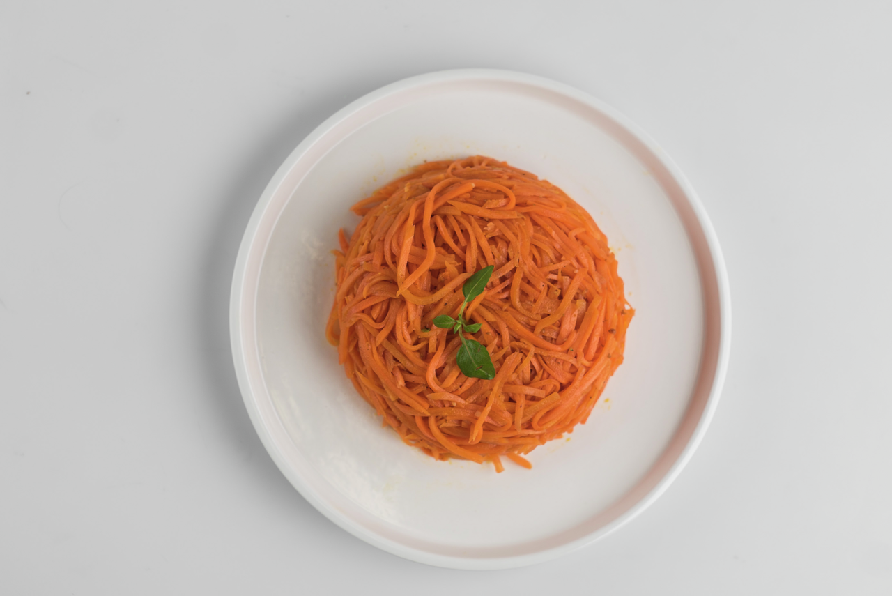 Морковь свежая, масло подсолнечное рафинированное дезодорированное, соль поваренная пищевая, чеснок свежий, сушеный, уксусная кислота , специи кориандр молотый, перец красный молотый сладкий, острый, консерванты Е211, Е202, комплексная пищевая добавка смесь подсластителей аспасвит 185 подсластители Е952, Е954, натуральный пищевой краситель экстракт паприки, комплексная пищевая добавка регуляторы кислотности - ацетат натрия, молочная кислота, цитрат натрия, антиоксиданты - аскорбиновая кислота, аскорбат натрия.