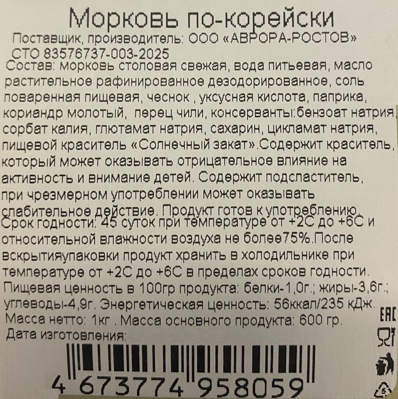 Морковь по-корейски Аврора-Ростов 1кг