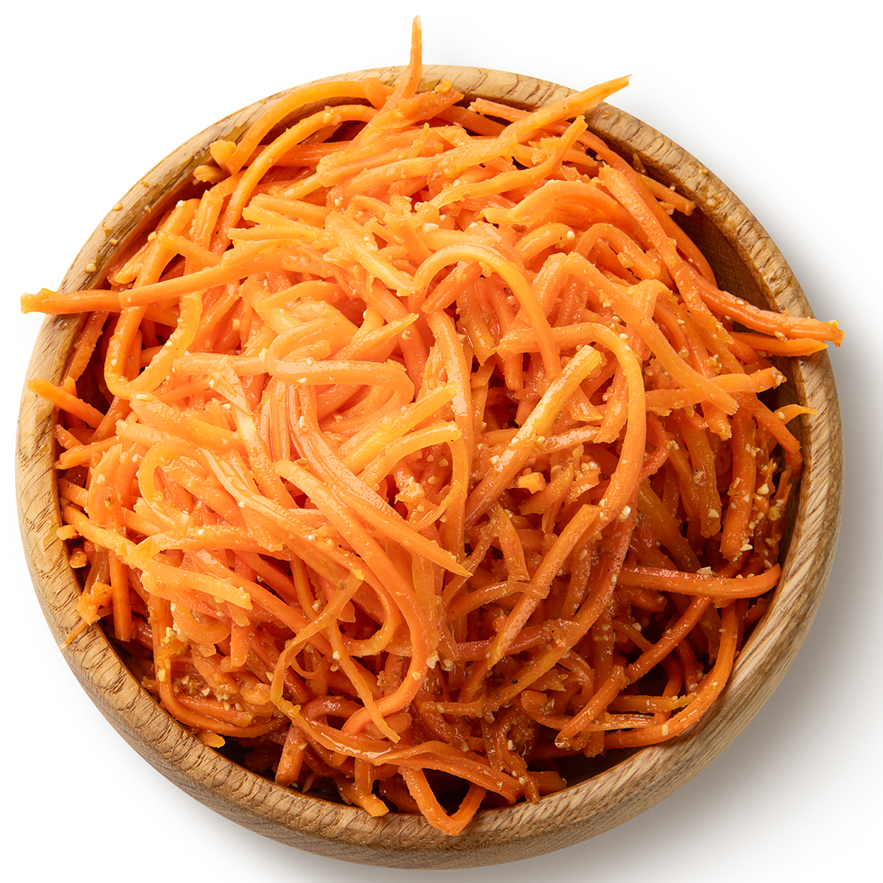 Морковь столовая свежая, масло растительное подсолнечное рафинированное дезодорированное, соль пищевая, чеснок, кориандр, перец красный острый, регулятор кислотности уксусная кислота, усилитель вкуса глутамат натрия Е621, консерванты бензоат натрия Е202 и сорбат калия Е211, комплексная пищевая добавка смесь подсластителей аспасвит 185(цикламат натрия Е952, сахаринат натрия Е954).