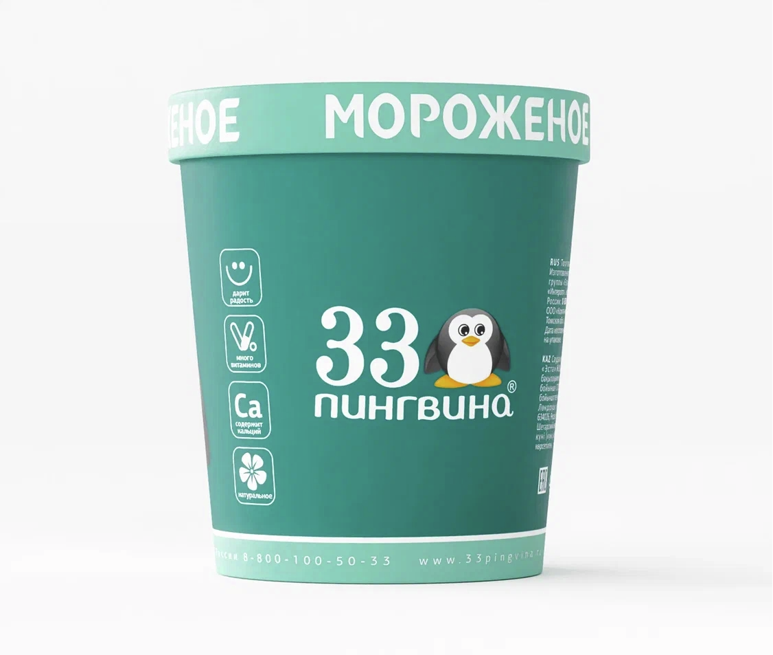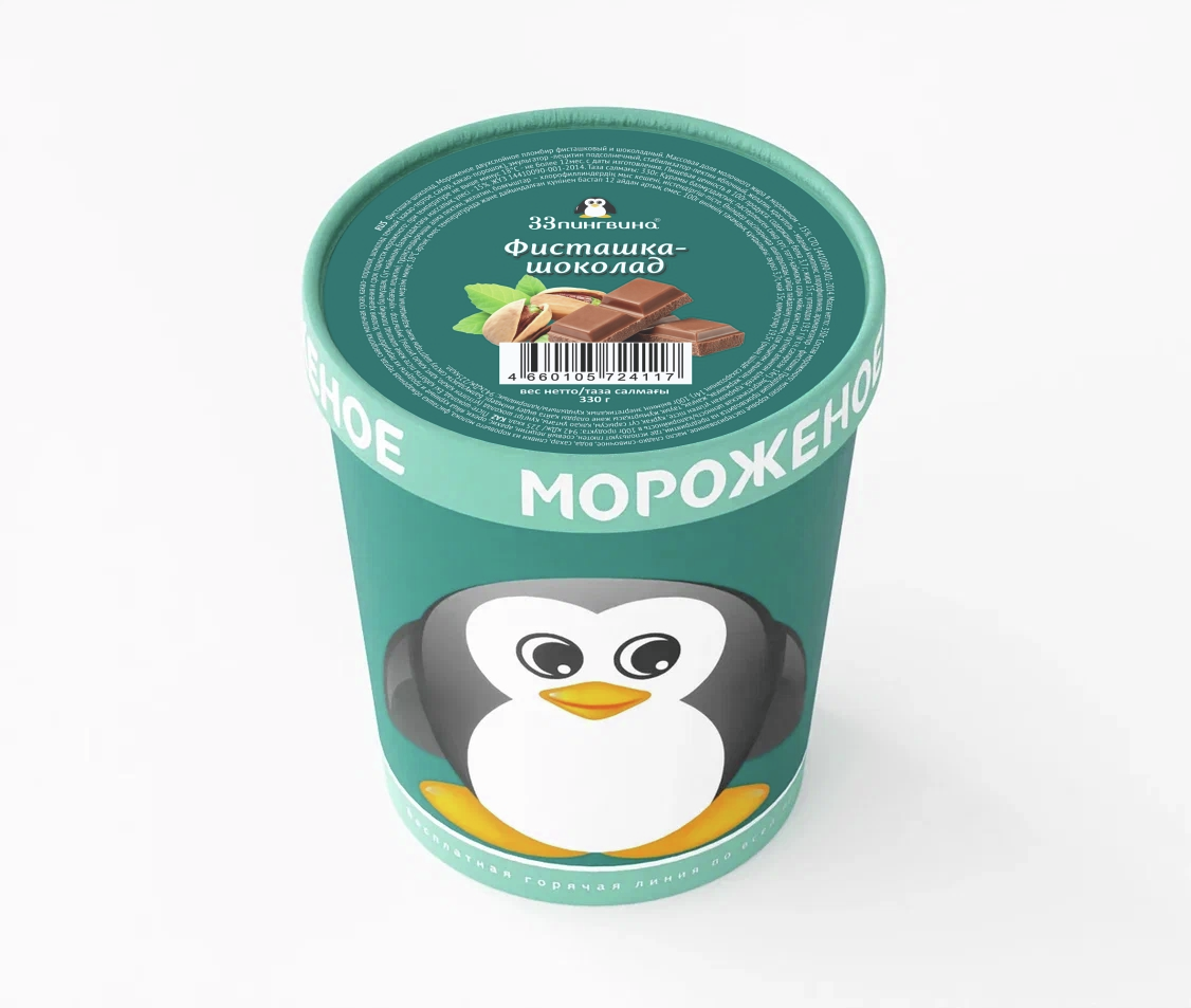 Мороженое пломбир 33 Пингвина Фисташковое и шоколадное, 330г
