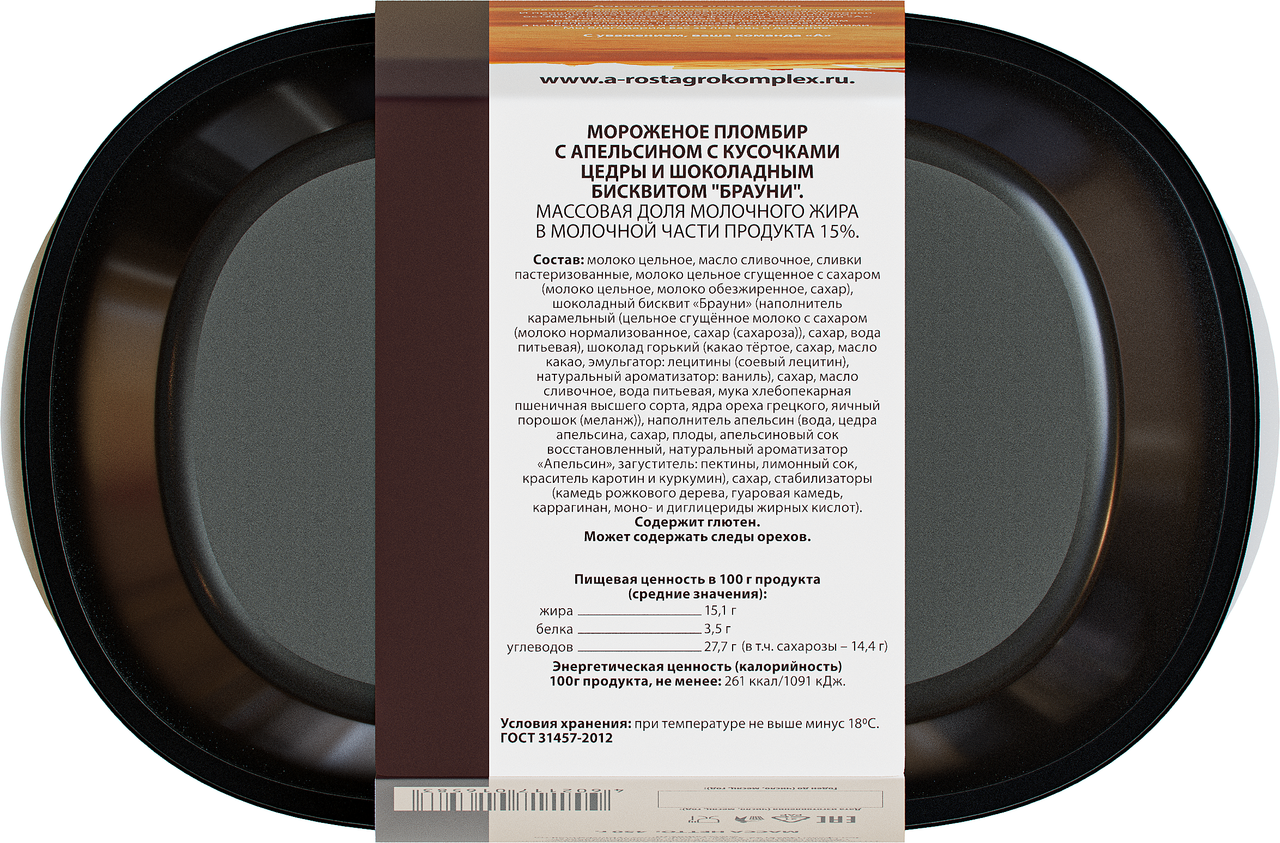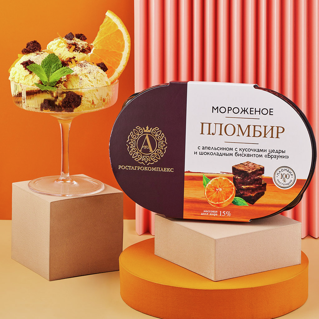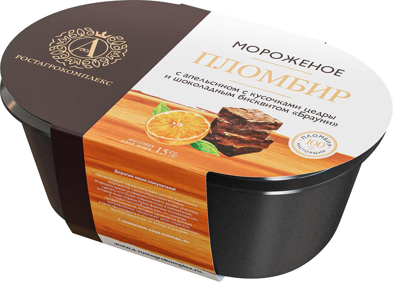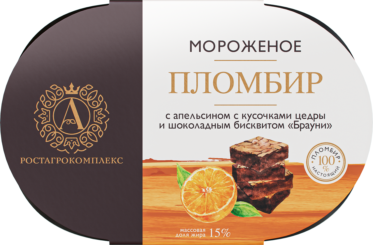 Мороженое пломбир А.Ростагрокомплекс Брауни с апельсином 15%, 450г