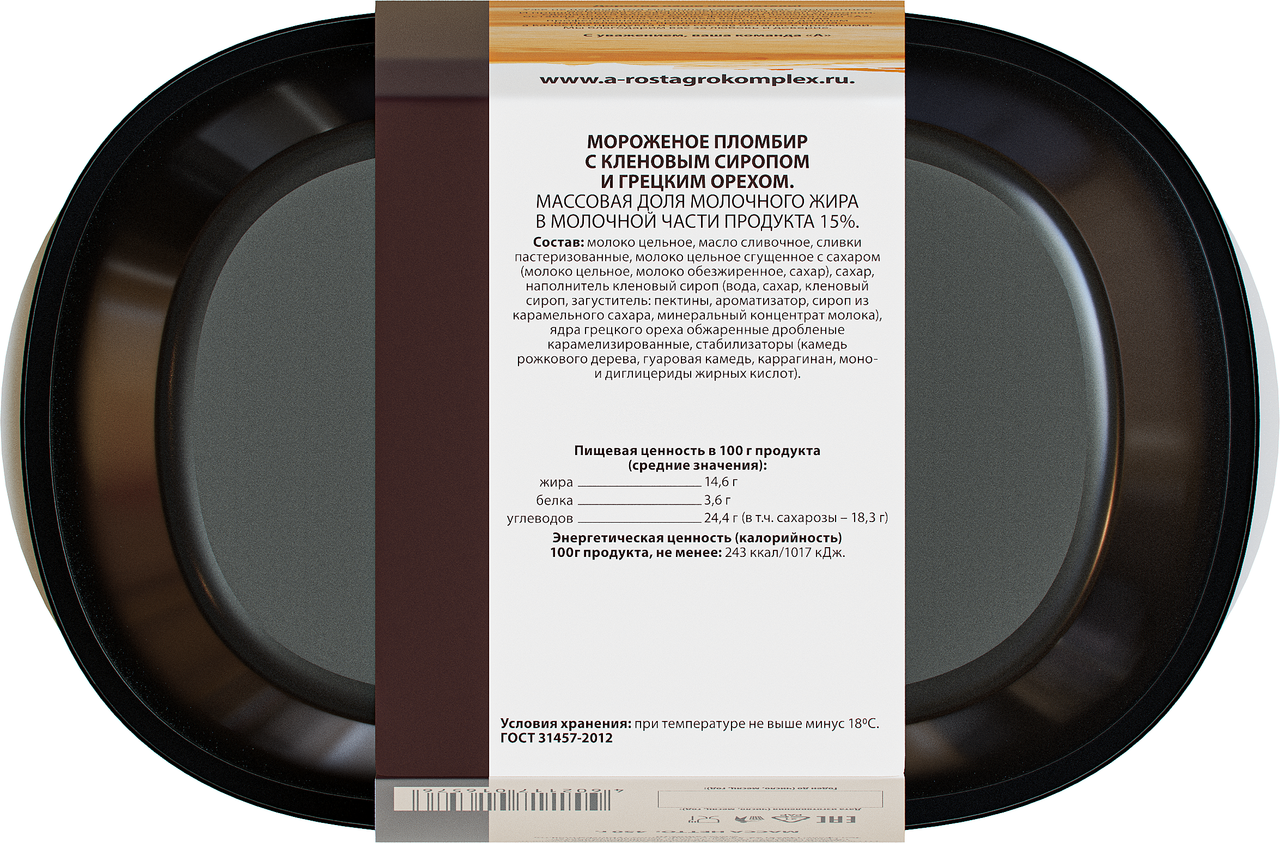 Мороженое пломбир А.Ростагрокомплекс с кленовым сиропом и грецким орехом 15%, 450г