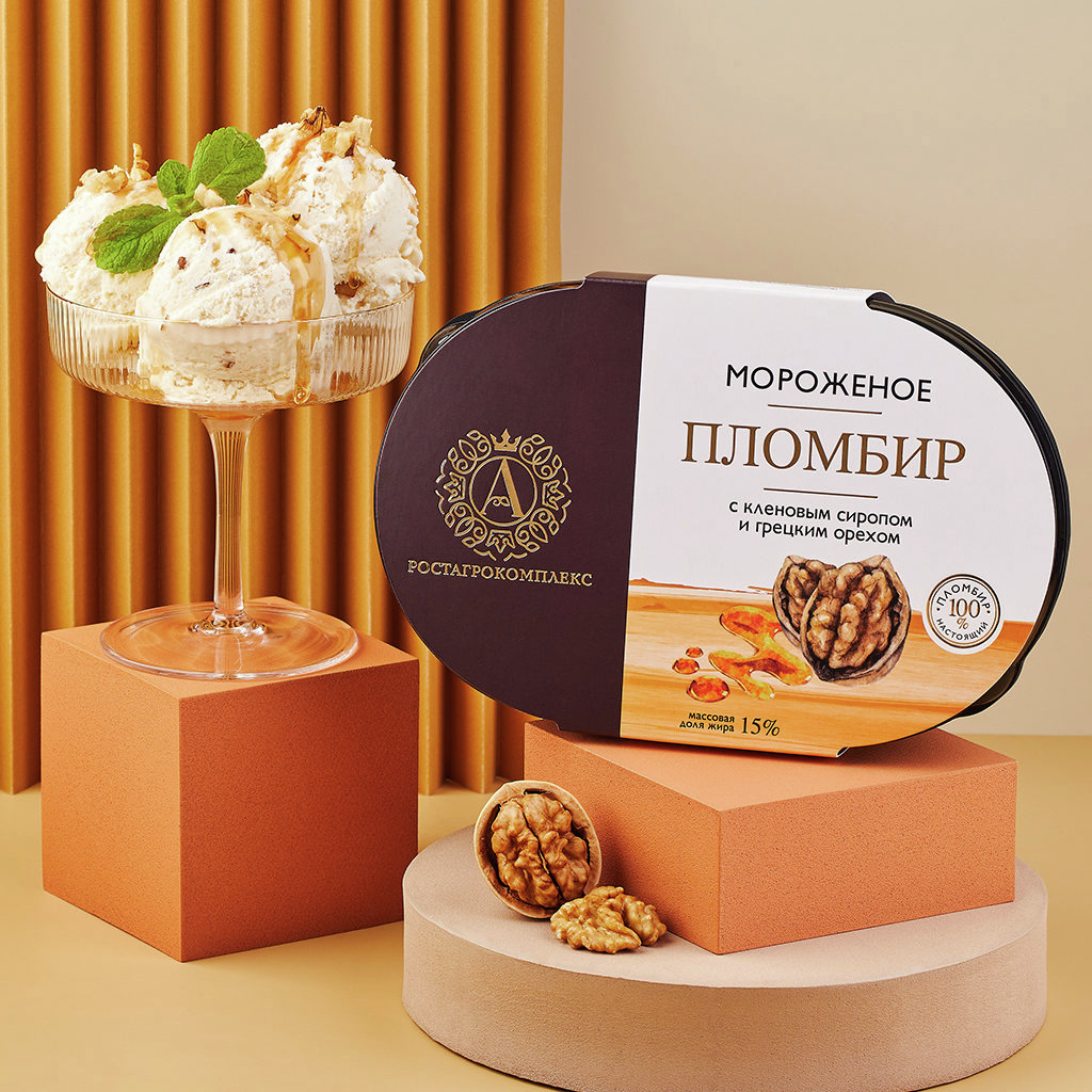 Представляем Вам изысканное мороженое от А.РОСТАГРОКОМПЛЕКС - пломбир с кленовым сиропом и грецким орехом для самых искушенных гурманов! Чтобы создать такое мороженое, мы взяли за основу пломбир из натуральных сливок, добавили в него дробленый грецкий орех и ароматный кленовый сироп. Такое изысканное лакомство непременно придется Вам по вкусу!