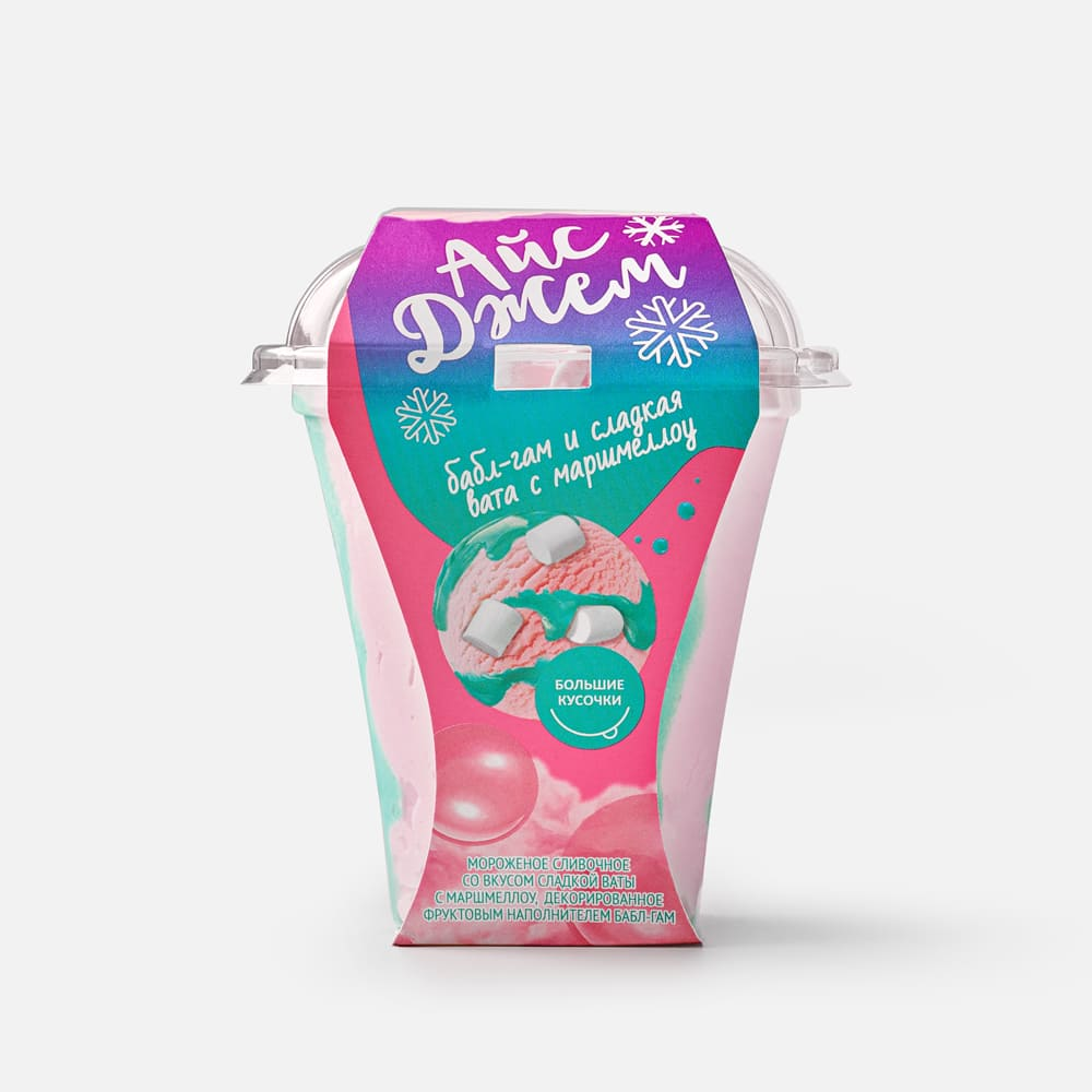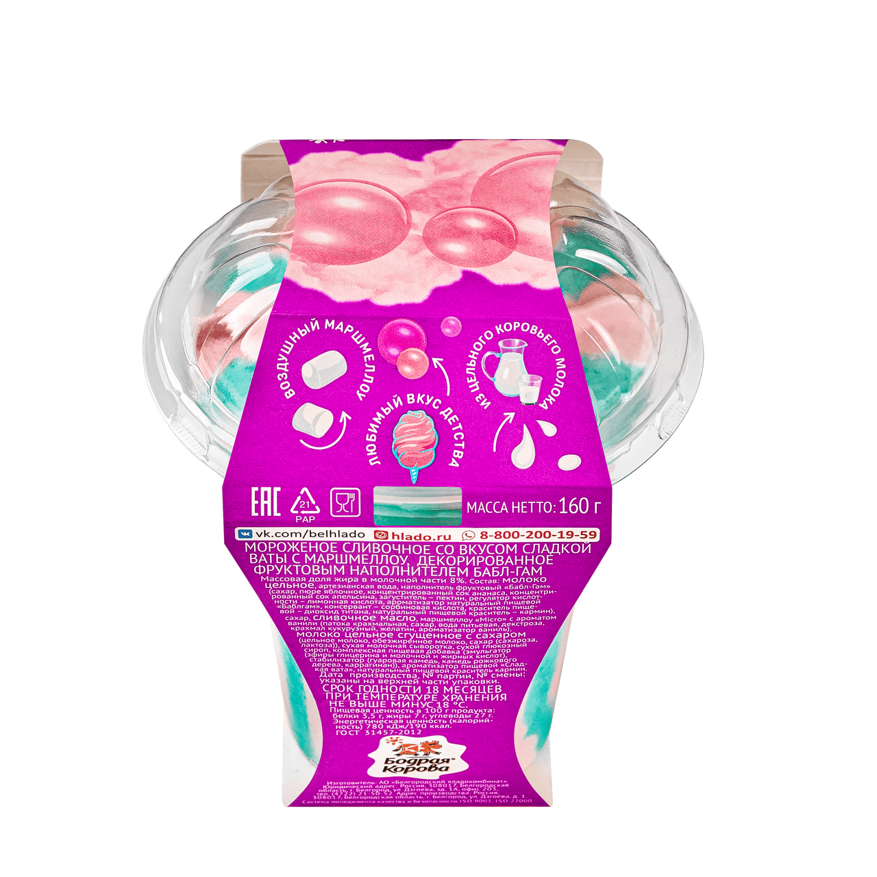 Мороженое сливочное Бодрая Корова Айсджем Бабл гам и сладкая вата с маршмеллоу ГОСТ 8%, 160г