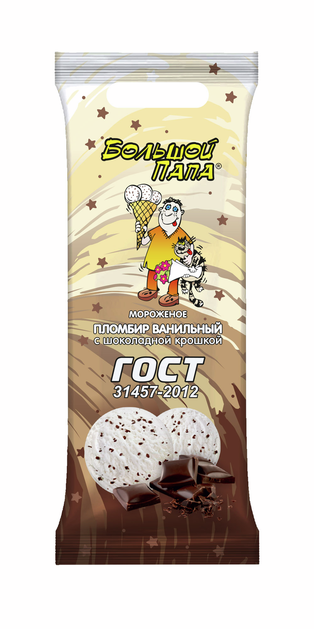Мороженое пломбир Большой папа Ванильное с шоколадной крошкой 12%, 1кг