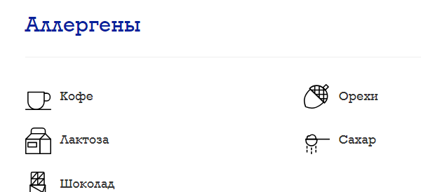 Сливки, восстановленное обезжиренное молоко, сахарный сироп, мягкая карамель Шоколадная сахар, вода, патока крахмальная, масло сливочное, сухое обезжиренное молоко, какао-порошок, стабилизаторы Е1442, Е452i, Е466, ароматизатор, консервант Е202, соль поваренная пищевая, эмульгатор Е322, миндаль обжаренный, глюкозный сироп, кофе-основа сахар карамелизированный, сахар, ароматизатор, пищевой краситель Е150d, кофе быстрорастворимый, стабилизаторы Е466, Е412, Е407, пищевой краситель Е150d, эмульгатор Е471.