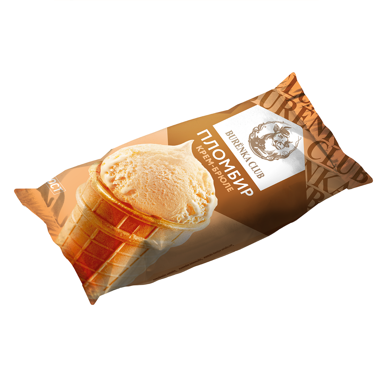 Мороженое пломбир Burenka Club Крем-брюле в вафельном стаканчике ГОСТ 15%, 80г