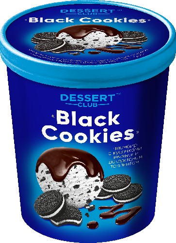 Мороженое пломбир Dessert Club Black Cookies с кусочками печенья и шоколадным топпингом ГОСТ, 450г