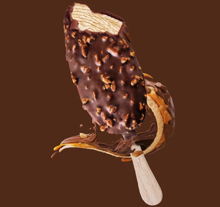 Мороженое молочное вода, сахар, глюкозный сироп пшеничный, кукурузный, сухое обезжиренное молоко, паста из жареного арахиса арахис, растительное масло пальмовое, глюкозный сироп пшеничный, кукурузный, масло сливочное M или молочный жир F, какао порошок, эмульгатор моно- и диглицериды жирных кислот, стабилизаторы камедь рожкового дерева, гуаровая камедь, Е407, соль; глазурь масло пальмоядровое гидрогенизированное рафинированное дезодорированное, сахар, арахис, сухое цельное молоко, какао порошок, сухая молочная сыворотка, какао тертое, глюкозный сироп, масло растительное пальмовое, эмульгаторы лецитины, соевый, подсолнечный, Е476, ароматизатор ванилин; карамель глюкозный сироп кукурузный, сгущенное цельное молоко с сахаром цельное молоко, обезжиренное молоко, сахар, лактоза, растительное масло пальмовое, соль, краситель 150а, ароматизатор тоффи, стабилизатор Е407а, регулятор кислотностиЕ270, Е331.