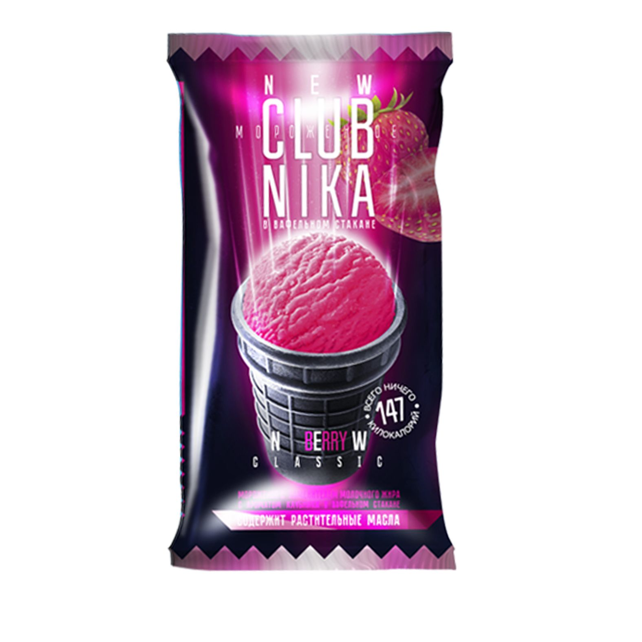 Мороженое Фабрика грез клубника черный вафельный стаканчик 12%, 70г