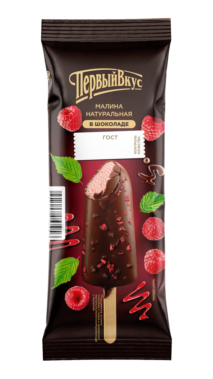 Мороженое пломбир Первый вкус Натуральная малина эскимо 12%, 75г