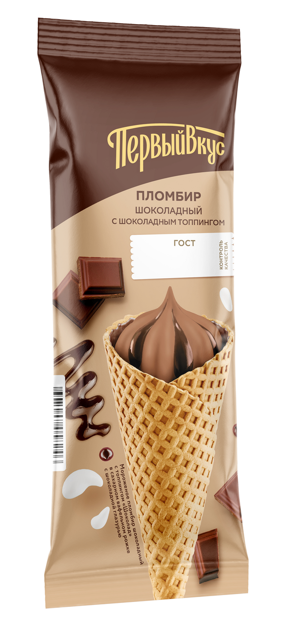 Мороженое пломбир Первый вкус рожок Шоколадное в вафельном рожке ГОСТ 15%, 90г