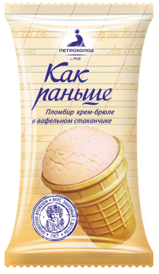 Мороженое пломбир Петрохолод Как раньше Крем-брюле в вафельном стаканчике, 70г