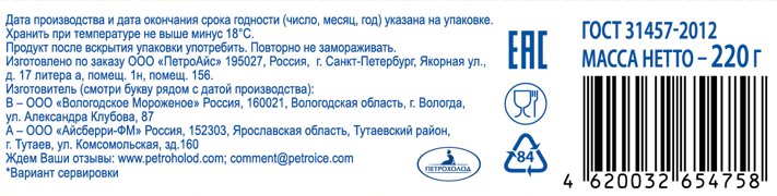 Мороженое пломбир Петрохолод Фисташка и кешью, 220г