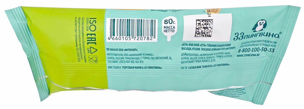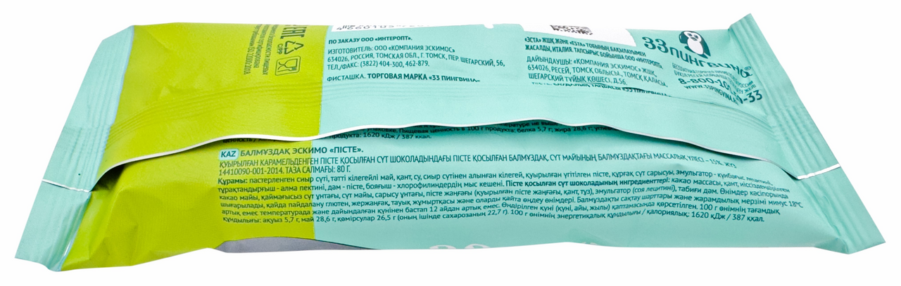 Мороженое пломбир 33 Пингвина эскимо фисташка, 80г