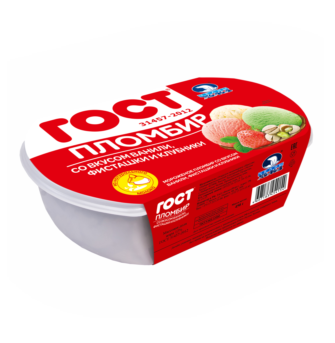 Мороженое пломбир Челны холод Со вкусом ванили, фисташки и клубники 12% БЗМЖ (без заменителя молочного жира), 450 г представляет собой вкусный десерт, который придется по вкусу как взрослым, так и детям. В нем отлично сочетаются несколько вкусов и ароматов. Использование натурального коровьего молока придает оригинальный, ярко-выраженный вкус и приятный аромат который знаком каждому с детских лет. Обертка из фольги помогает сохранить целостность мороженого, а прочная упаковка – вкусовые качества, что очень важно при долгом хранении продукта в морозильной камере. Челны Холод – это известная российская компания, которая производит различные виды мороженого и полуфабрикатов. Она существует на рынке больше 30 лет. В настоящее время предприятие имеет около 160 партнеров в 69 странах регионах РФ. К отличительным особенностям относятся: натуральность, высокое качество и необычный вкус. Обращаем ваше внимание, что в состав мороженого не входят заменители молочного жира.