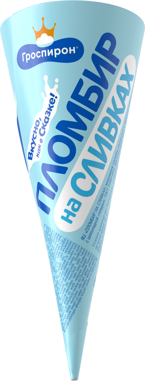 Пломбир на сливках ванильный ГРОСПИРОН в сахарном рожке не содержит заменителя молочного жира. Аппетитное лакомство понравится взрослым и детям.