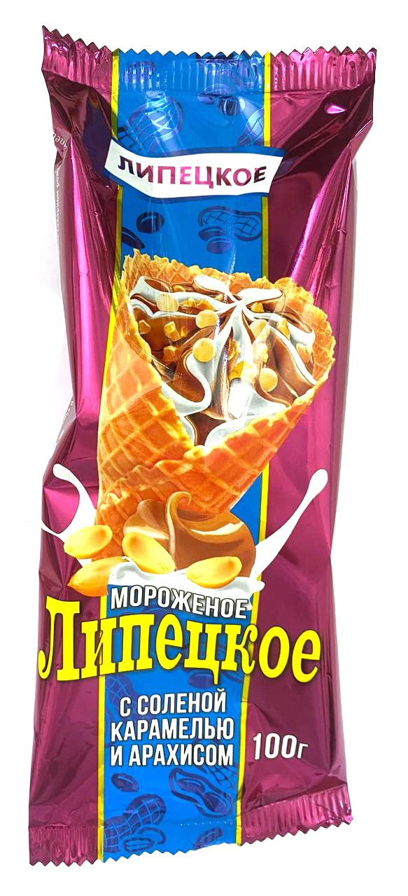 Мороженое пломбир Липецкое соленая карамель и арахис рожок, 100г