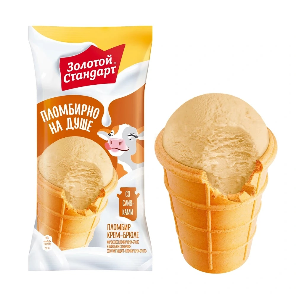 Мороженое пломбир Золотой стандарт Крем-брюле в вафельном стаканчике 12%, 90г