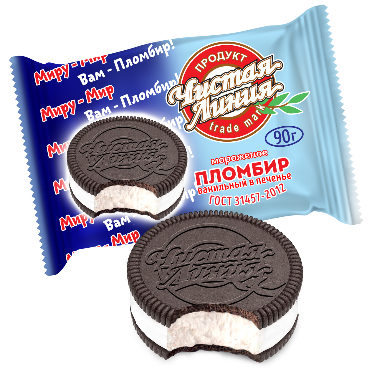 Мороженое пломбир Чистая Линия Ванильное в печенье ГОСТ 12%, 90г
