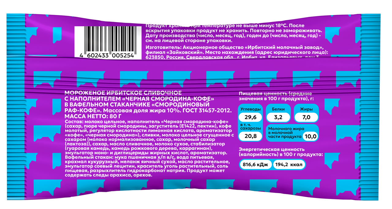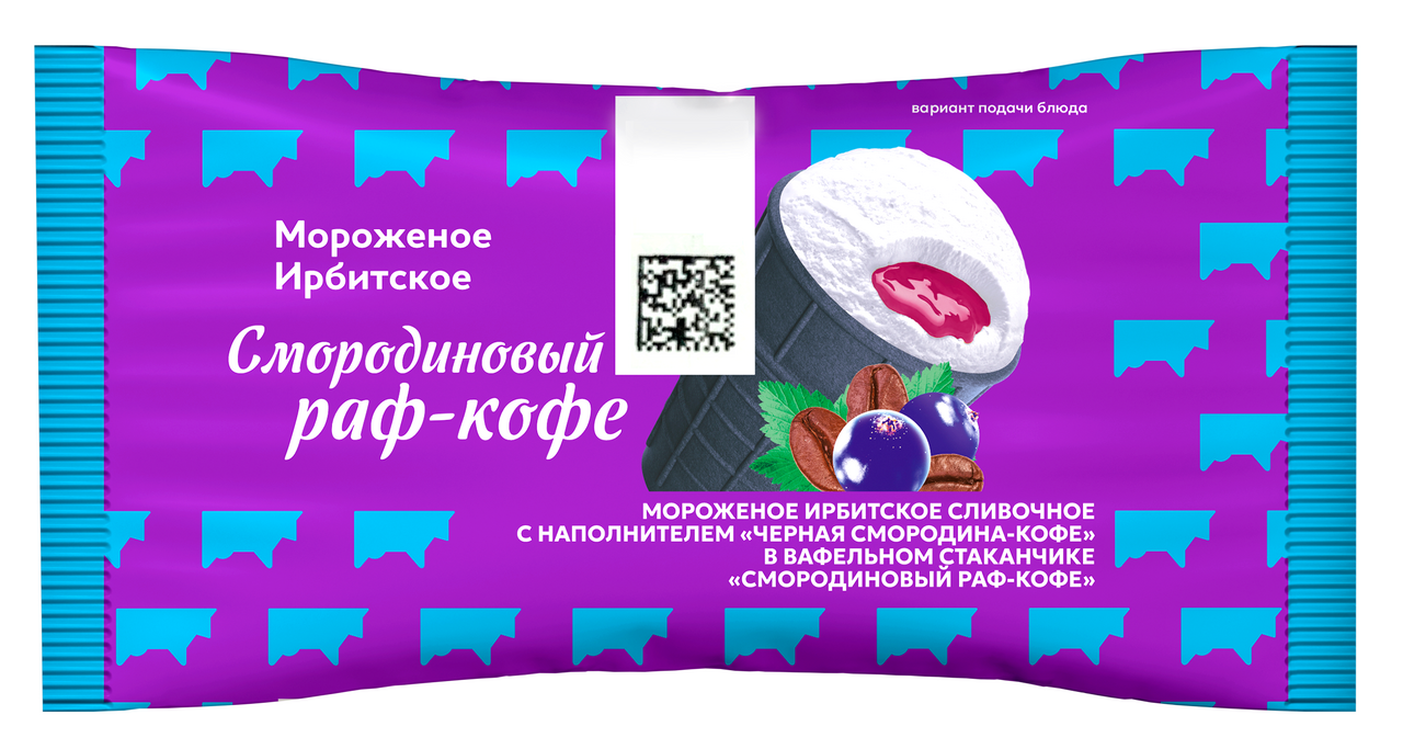 Мороженое сливочное Ирбитское смородиновый раф-кофе в вафельном стаканчике, 80г