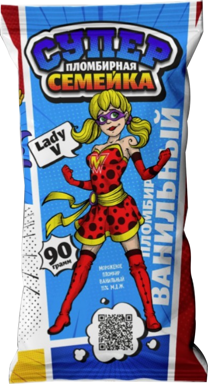 Мороженое пломбир Суперсемейка Ванильное в вафельном стаканчике ГОСТ, 90г