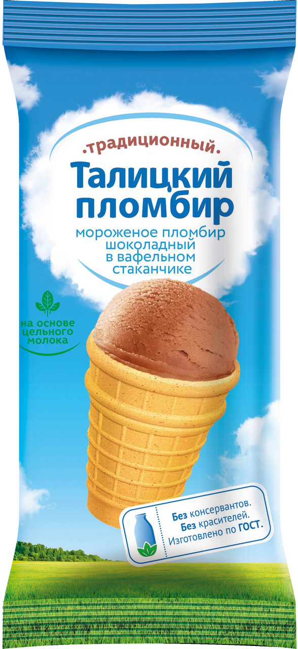Мороженое пломбир Талицкий Шоколадное в вафельном стаканчике ГОСТ 15%, 75г