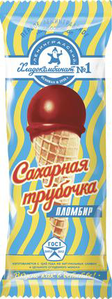 Мороженое Ленинградский Хладокомбинат №1 Сахарная трубочка Пломбир, 70г — десерт, производящийся по традиционному рецепту, предполагающему использование натуральных молочных ингредиентов. В составе цельное и сухое молоко, сливки, сливочное масло в сбалансированных пропорциях, придающих текстуре нежный и однородный вкус. Мягкое мороженое представлено в хрустящем вафельном рожке, сверху залито шоколадной глазурью. Продукт достаточно калорийный: на 100 г лакомства приходится 19% жиров и 315 калорий, что делает его сытным перекусом. Лакомство представлено в герметичной упаковке флоу-пак, надежно оберегающей содержимое от контакта с посторонними запахами в течение всего срока хранения. Обращаем ваше в��имание, что в состав мороженого не входят заменители молочного жира.