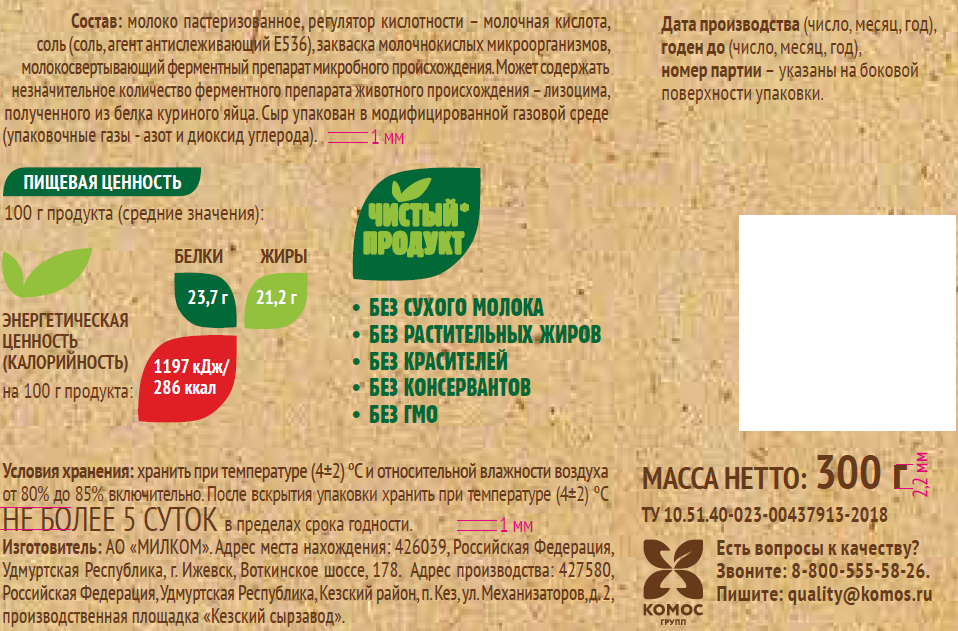 Молоко пастеризованное, регулятор кислотности – молочная кислота, соль (соль, агент антислеживающий Е536), закваска молочнокислых микроорганизмов, молокосвертывающий ферментный препарат микробного происхождения.