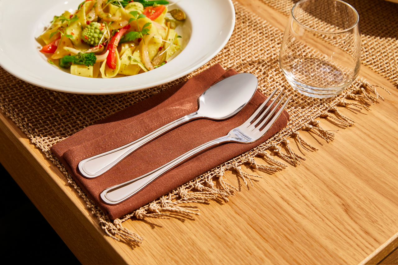 METRO PROFESSIONAL Ложка десертная Baguette, 6 шт. — незаменимый на каждой кухне предмет. Столовый прибор выполнен из прочного высококачественного материала. Он устойчив к незначительным механическим повреждениям: износу, царапинам и потертостям. Благодаря этому ложка долгое время не теряет презентабельный внешний вид. Прибор допустимо очищать как ручным способом, так и в посудомоечной машине. За счет стильного дизайна ложка отлично впишется в уже имеющиеся столовые приборы. Такие ложки отлично подойдут как для повседневной сервировки стола, так и для праздничной.