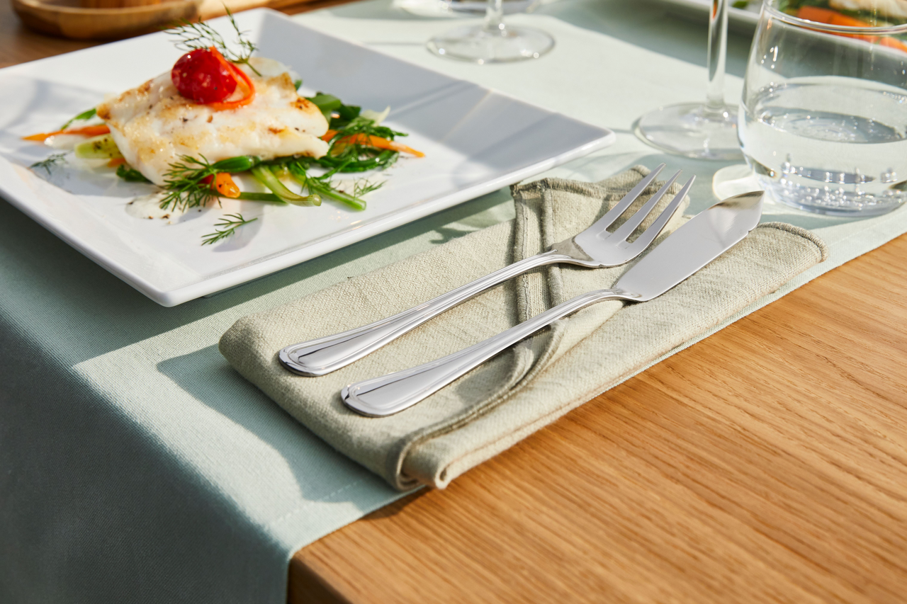 METRO PROFESSIONAL Нож для рыбы Goutte, 3 шт. – это незаменимый инструмент для сервировки стола дома, в кафе, ресторанах и других заведениях общественного питания. С его помощью можно легко и аккуратно отделить рыбное филе от костей, сохраняя целость и форму кусочков. Это важно, ведь каждая порция рыбы – это произведение искусства, которое должно быть представлено в наилучшем свете. Столовый нож входит в коллекцию высококачественной посуды METRO PROFESSIONAL, изготовленной из особо прочного материала. Он обладает высокой прочностью, стойкостью к коррозии и долговечностью. Нож отличается изящным и элегантным дизайном, который добавит изысканности вашему столу при сервировке. Кроме того, его эргономичная форма рукоятки обеспечивает комфортную и безопасную работу. Для сохранения качества и долговечности инструмент рекомендуется после каждого использования промыть теплой водой с мягким моющим средством, затем хорошо просушить. Нож для рыбы Goutte – выбор для тех, кто ценит качество, элегантность и практичность. Добавьте его в свою коллекцию кухонных принадлежностей и наслаждайтесь легкостью и вкусом рыбных блюд. Прибор оснащен особым клинком, который помогает легко отделять кости от мякоти или удалить кожицу, если такое требуется. Это удобно, так как позволяет улучшить визуальное восприятие и увеличить комфортность при приеме пищи.