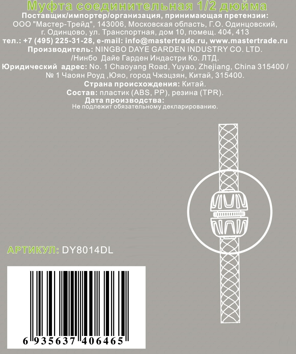 Муфта Daye ремонтная для шланга 1/2 дюйма