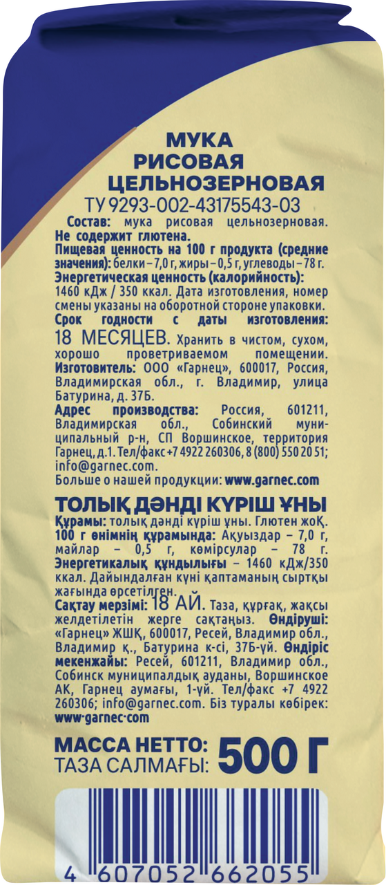 Мука Garnec рисовая цельнозерновая, 500 г не содержит глютена и именно по этой причине идеально подходит для выпекания пирогов из меню медицинской диеты, в которой полностью отсутствует клейковина. Продукт изготавливается по уникальной технологии на особом оборудовании, поэтому его состав лишен каких-либо примесей. Размол осуществляется при температуре не выше 40 градусов, благодаря чему зерна сохраняют свои полезные свойства. Регулярное употребление рисовой муки улучшает обмен веществ. В этом продукте содержится большое количество природных микроэлементов, витаминов и минералов, поэтому он отлично подходит как для взрослых, так и детей. Рисовая мука широко используется для приготовления сырников, оладий, хлебобулочных изделий, каш и других блюд.