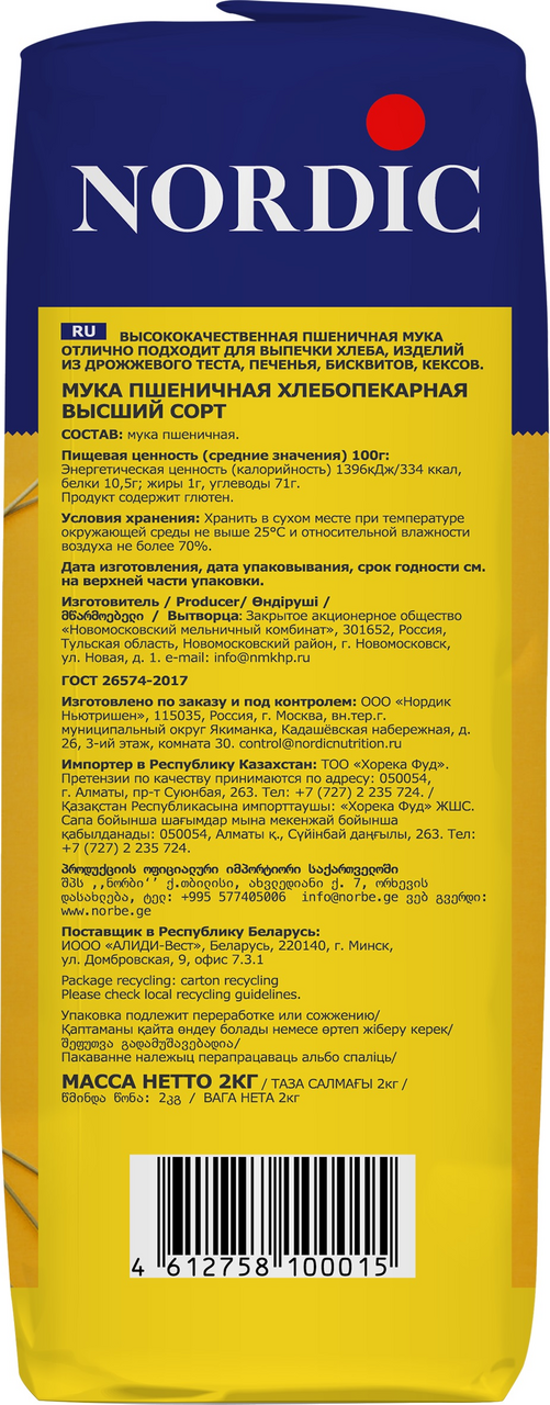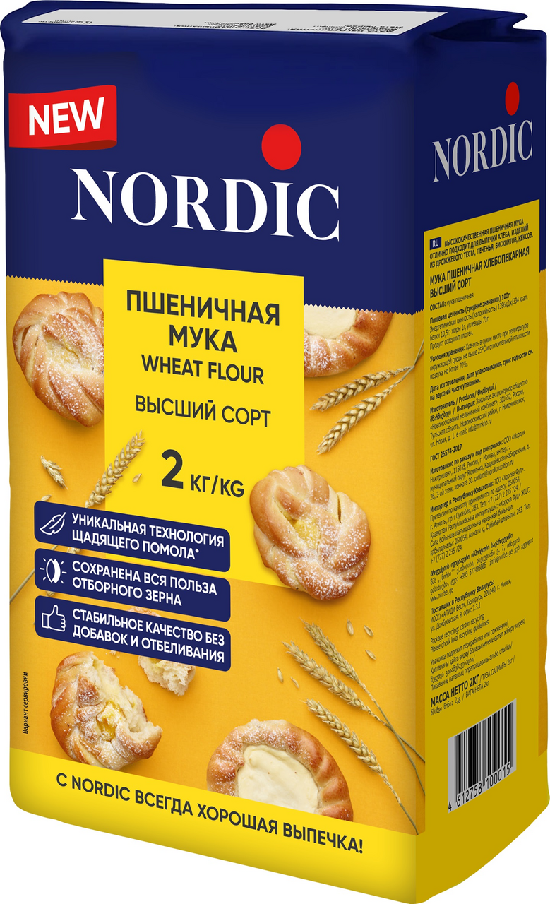 Мука пшеничная Nordic хлебопекарная высший сорт, 2кг