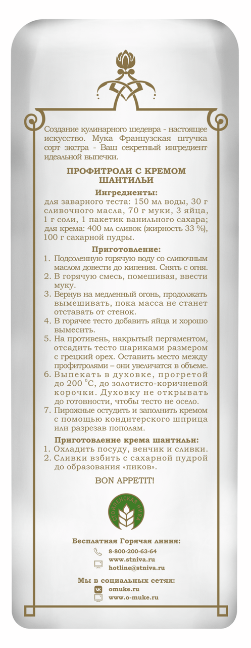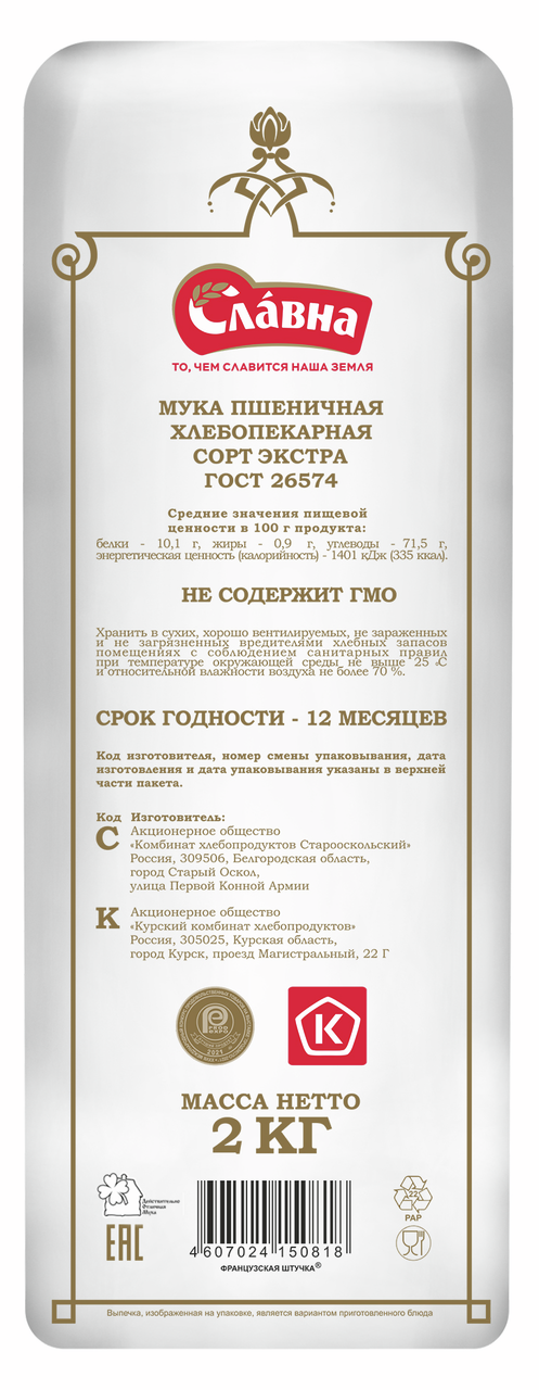 Мука Славна Французская штучка экстра, 2 кг создана из самой нежной сердцевины пшеничного зерна. Она отличается тонким помолом и белым цветом. Продукт изготавливается исключительно из элитных сортов пшеницы. Мука прекрасно подойдет для роскошной праздничной выпечки и изысканной французской: для круассанов, профитролей и бриошь.