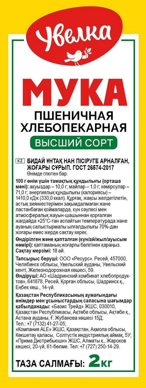 Мука Увелка пшеничная хлебопекарная высший сорт, 2кг