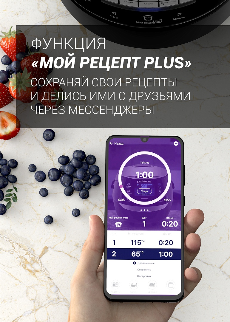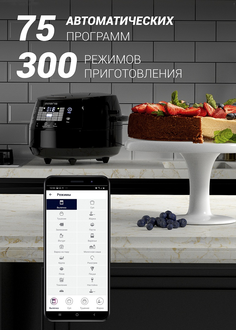 Мультиварка Polaris PMC 5050 Wi Fi IQ Home – незаменимый помощник на любой кухне. Этот многофункциональный прибор способен заменить собой сразу несколько кухонных девайсов. Благодаря встроенным программам он может жарить, печь и готовить на пару. Первые и вторые блюда, десерты, ароматная выпечка и даже йогурты – все это теперь сделать легко, быстро и просто с помощью этого прибора. Управление простое, имеется большой выбор настроек. Можно регулировать температурный режим, устанавливать время приготовления. Функционал позволяет отсрочить старт или использовать функцию автоподогрева, чтобы к указанному времени блюдо было готово или разогрето. В настройке есть вариант поэтапного приготовления, что важно для некоторых рецептов. Мультиварка этой модели занимает мало мест��, что удобно для малогабаритных кухонь. Инструкция на русском языке, подробная и понятная.