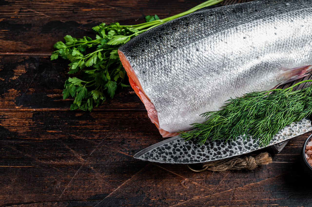 Лосось мурманский филе на коже Тримм А охлажденный, ~1.8-2кг