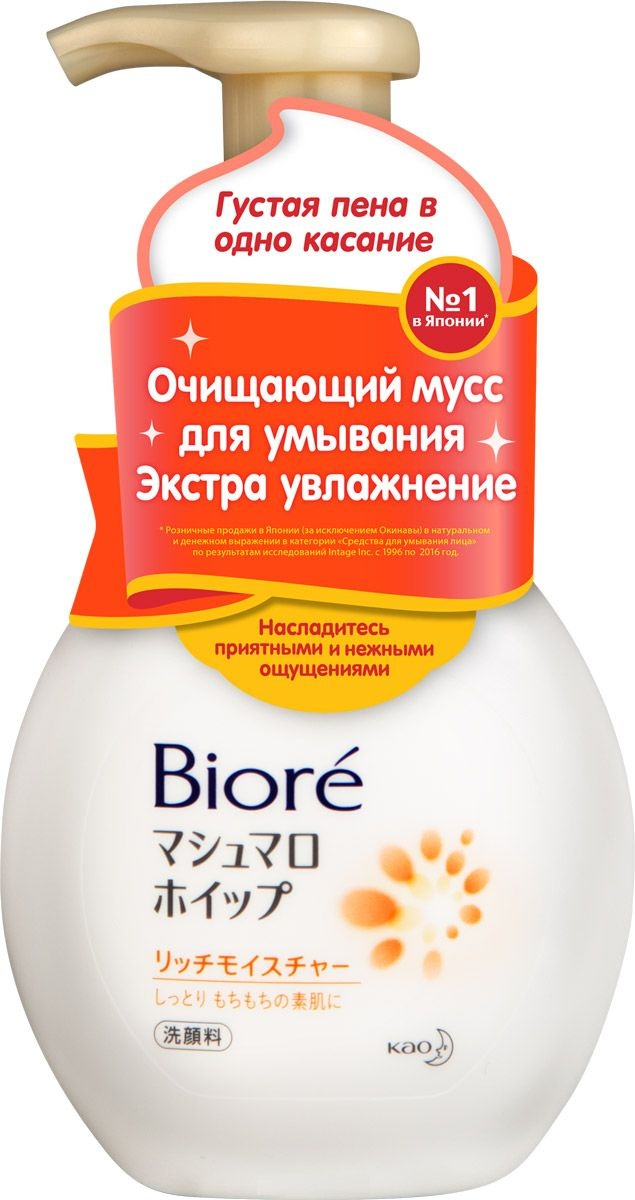 Японский экстра увлажняющий мусс для умывания Biore эффективно очищает кожу и оставляет её увлажненной, без чувства стянутости. Содержит 40% увлажняющих ингредиентов. Благодаря помпе-дозатору, достаточно одного нажатия для получения густой, как маршмеллоу, пены с легким цветочным ароматом. Получите удовольствие от умывания с нежной и мягкой пенкой. Уникальная технология SPT от KAO тщательно удаляет загрязнения и поддерживает оптимальный водный баланс кожи. Для сухой и обезвоженной кожи. Имеет надежный фиксатор от случайного нажатия. Данный мусс предназначен для умывания лица и очищения от кожного себума. Для гарантированного удаления макияжа рекомендуем использовать наши бестселлеры: Сыворотку, Гидрофильное масло, Тающий гель, Мицелля��ную воду либо Салфетки для снятия макияжа.
